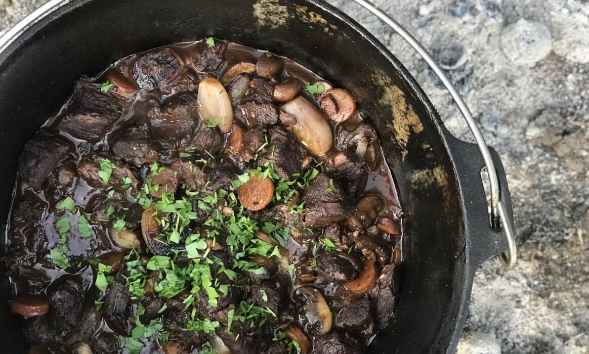 Boeuf Bourguignon ist ein Klassiker der französischen Küche. Das Schmorgericht stammt aus dem Burgund. Unser Boeuf Bourguignon Rezept haben wir im Dutch Oven zubereitet.