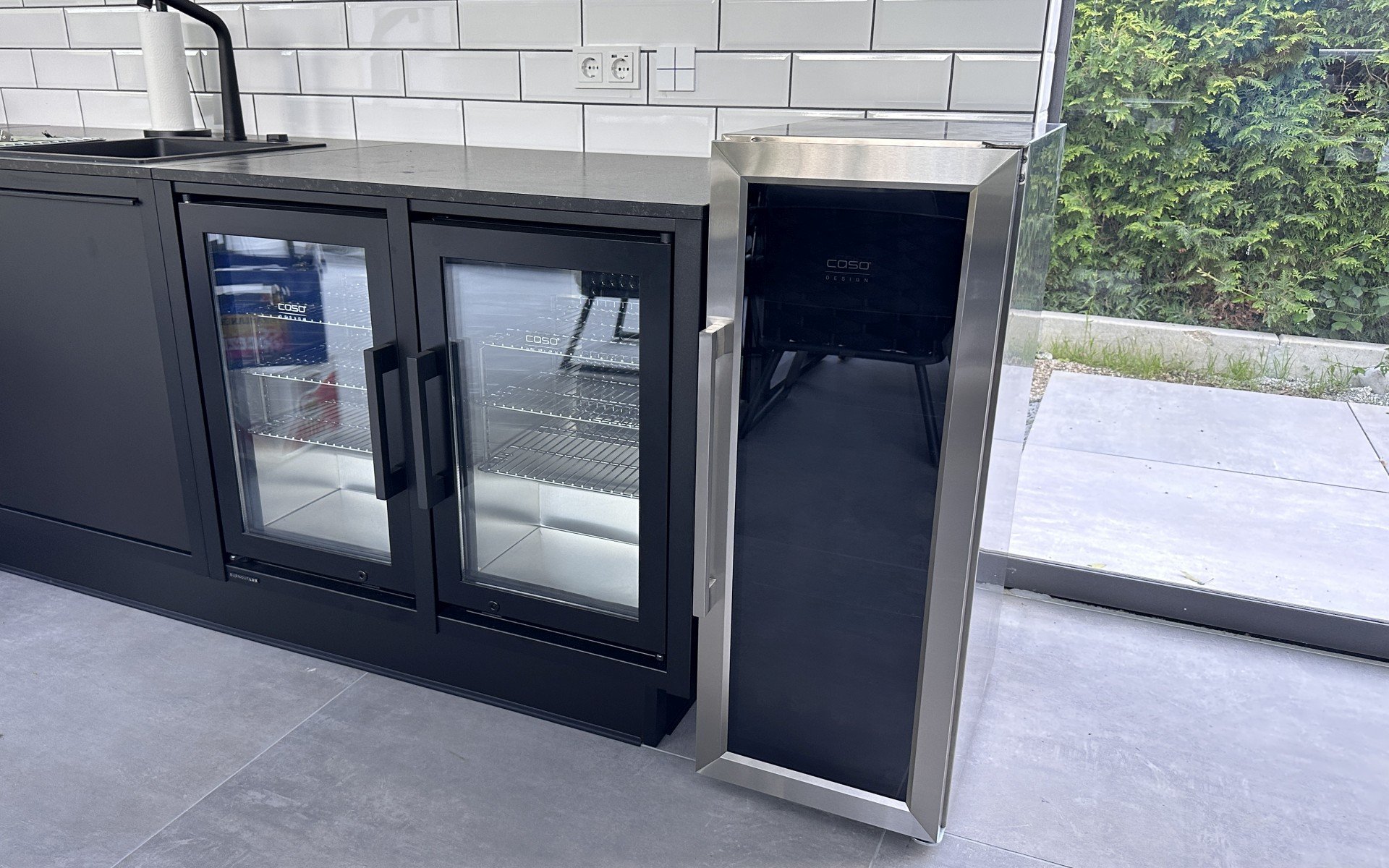 Uns erreichen immer mal wieder Fragen, welche Kühlschrank-Modelle überhaupt für den Außenbetrieb geeignet sind und welche Modelle wir empfehlen können. Beim Kauf eines Outdoor-Kühlschrankes muss man daher in erster Linie darauf achten, dass er witterungsbeständig ist und auch Kälte, sowie hohe Luftfeuchtigkeit in der kalten Jahreszeit verträgt. Mittlerweile gibt es einige Hersteller, die Kühlschränke für draußen anbieten, jedoch sind die Preise dafür meist im Preisbereich um 2000€. CASO hingegen bietet den Barbecue Cooler M zu einem fairen Preis zwischen 899€ an. Der noch größere BBQ Cooler L ist für 1199€ zu haben. Alle CASO Outdoor-Kühlschränke sind witterungsbeständig und können ganzjährig überdacht draußen betrieben werden. Im Herbst und Winter macht es natürlich nur bedingt Sinn, einen Outdoor-Kühlschrank zu betreiben, da im Winter keine Kühlung erforderlich ist. Der CASO BBQ Cooler M kann dennoch 365 Tage im Jahr draußen in der überdachten Outdoorküche stehen. Unser erster BBQ Cooler von CASO ist seit 2018 draußen im Einsatz und er ist immer noch voll funktionsfähig.