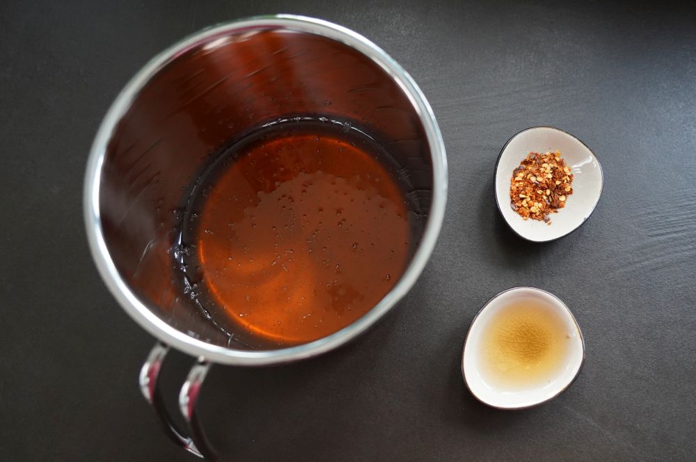 Schritt 1: Der Honig wird mit den Chiliflocken erhitzt