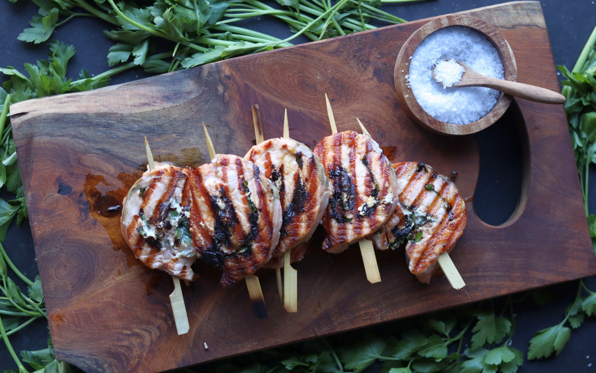Lachs-Pinwheels mit Frischkäse-Füllung ist ein einfacher aber genialer Fingerfood-Snack vom Grill, der schnell und einfach zuzubereiten ist. Wie man diese gefüllten Lachs-Medaillons macht, zeigen wir euch in diesem Rezept.