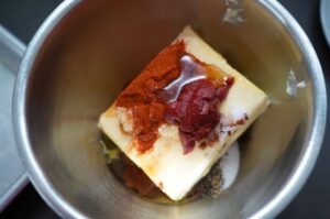 Die Butter muss bei Zimmertemperatur verarbeitet werden. Ist sie zu kalt, verbinden sich die Zutaten nicht miteinander. Die Butter sollte daher ein 2-3 Stunden vor der Verarbeitung aus dem Kühlschrank genommen werden. Dann wird die Butter eine Schale gegeben und die restlichen Zutaten kommen mit in die Schale. Alles gut miteinander vermischen, so dass sich alle Zutaten miteinander verbinden. Wer möchte, kann die Butter auch cremig mit der Küchenmaschine aufschlagen, dann wird sie besonders luftig und cremig.