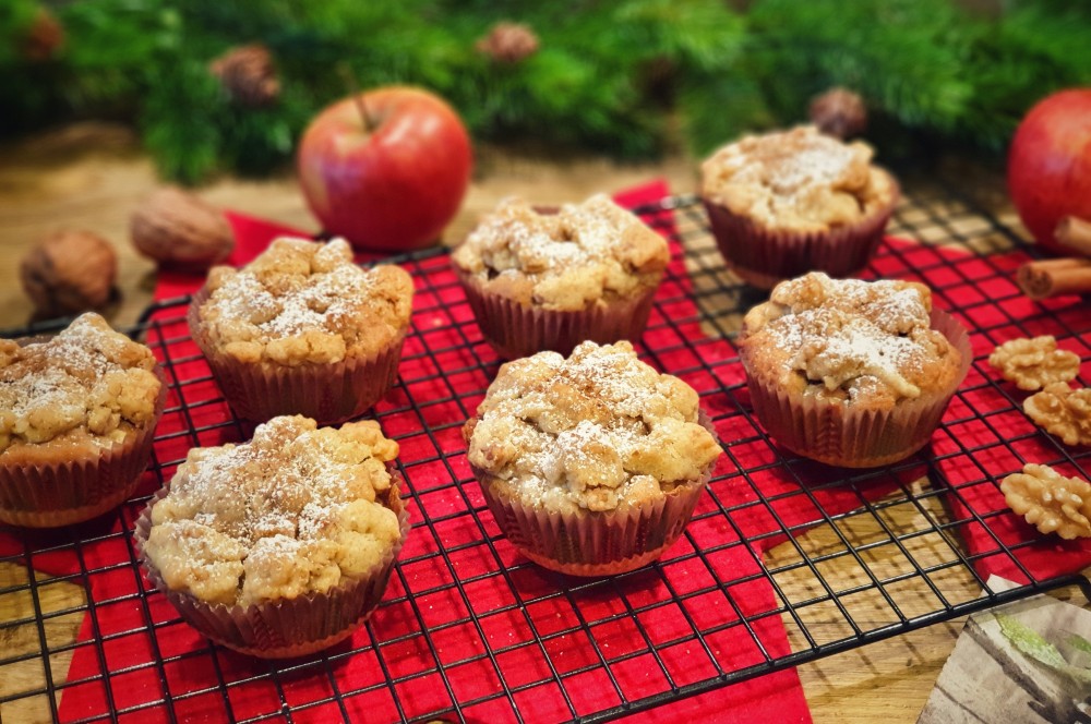 Bratapfel-Muffins mit Streuseln machen sich perfekt auf der Kaffeetafel in der kalten Jahreszeit und sind vor allem bei Kindern sehr beliebt. In diesem Rezept zeigen wir euch, wie man die Muffins zubereitet.