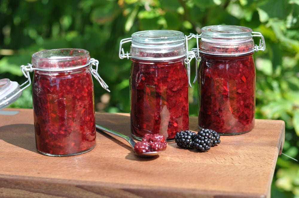 Ist die gewünschte Konsistenz erreicht, wird das heiße Chutney sofort abgefüllt. Wenn man es direkt in Einmachgläser abfüllt und fest verschliesst, ist kein weiteres Einkochen notwendig und das Brombeer-Chutney hält sich mehrere Monate.