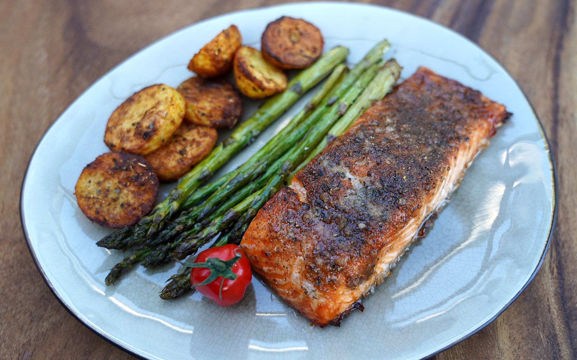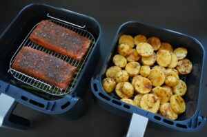 Lachsfilet mit grünem Spargel und Kartoffeln aus dem Air Fryer