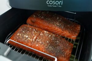 Lachsfilet mit grünem Spargel und Kartoffeln aus dem Air Fryer ist innerhalb von 25 Minuten im Air Fryer zubereitet. Wie man dieses Gericht im COSORI Turbo Tower zubereitet, zeigen wir euch in diesem Rezept.