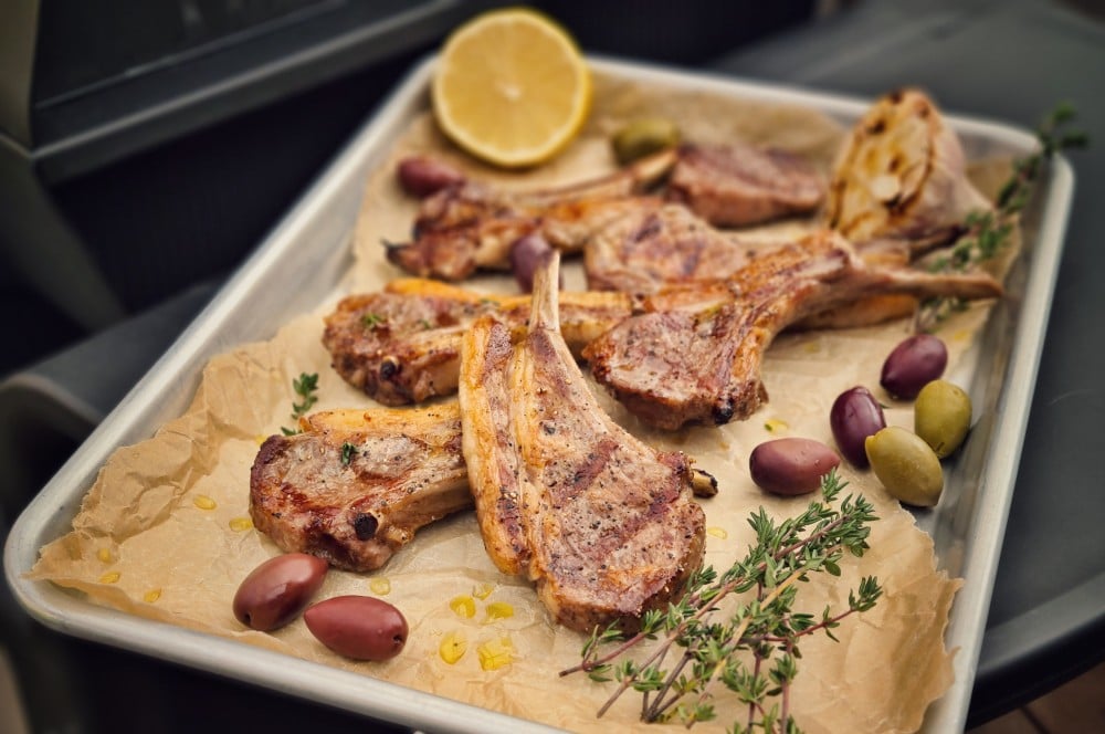Die Lammkoteletts werden jetzt für ca. 90 Sekunden gegrillt. Anschließend werden die Kräuter von den Lammkoteletts genommen, der SEVO mit der Boost-Funktion auf 500°C aufgeheizt und die Lammkoteletts gewendet. Dabei sollte man die Lammkoteletts im Blick behalten, denn der SEVO sorgt blitzschnell für Röstaromen. Mehr als 60 Sekunden wird die zweite Seite nicht benötigen, da sie recht dünn sind. Mit etwas Zitrone beträufelt und Oregano bestreut, können unsere Lammkoteletts griechischer Art auf einem Teller oder Tablett mit ein paar griechischen Oliven am besten direkt noch heiß serviert werden. Mit etwas Fladenbrot und Tzatziki dazu gereicht, kommt mit diesen Lammkoteletts nach griechischer Art direkt Urlaubsfeeling auf!