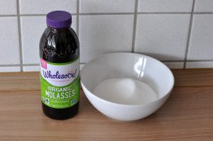 Man braucht also lediglich Melasse eund einfachen weißen Zucker. Melasse bitte nicht mit Zuckerrübensirup (Grafschafter Goldsaft) verwechseln, denn das schmeckt komplett anders. Man bekommt Melasse im Bio-Markt, im Reformhaus oder man bestellt sie online.