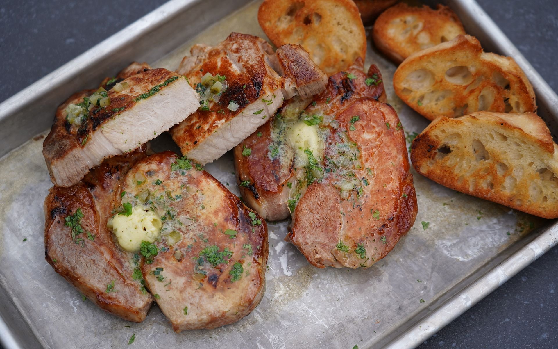 Wir grillen Rückensteaks mit Gewürzgurkenbutter! Wie man diese genialen dry aged Schweinerückensteaks mit Dill Pickle Butter zubereitet, zeigen wir euch in diesem Rezept.