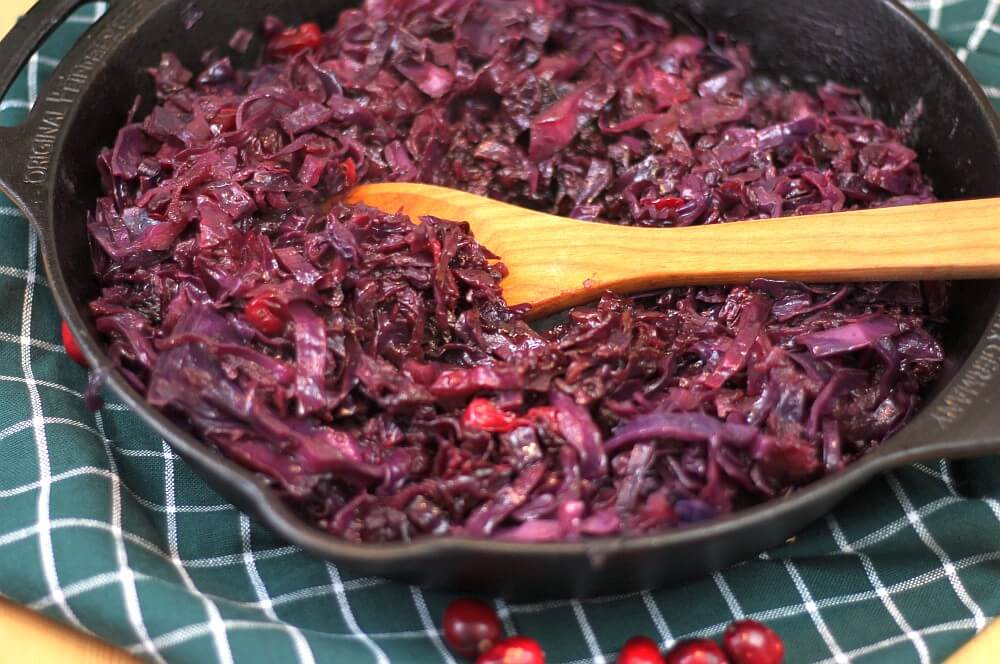 Das Ganze lässt man nun bei gelegentlichem Umrühren für ca. 40 Minuten bei mittlerer Hitze mit geschlossenen Deckel schmoren. Wer mal etwas anderes als das klassische Apfel-Rotkohl ausprobieren möchte, der sollte nun die Cranberries hinzufügen und diese für weitere 20 Minuten mitschmoren. Die herb-fruchtige Note der Cranberries passt hervorragend in den Apfel-Rotkohl.