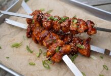 Hähnchen-Bacon-Spieße mit Sesam sind mit BBQ-Sauce glasierte Grillspieße mit saftigem Hähnchenbrustfilet, Bacon und Sesam. In diesem Rezept zeigen wir euch, wie man die saftigen...